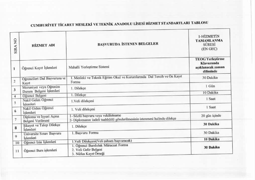 Hizmet Standartları